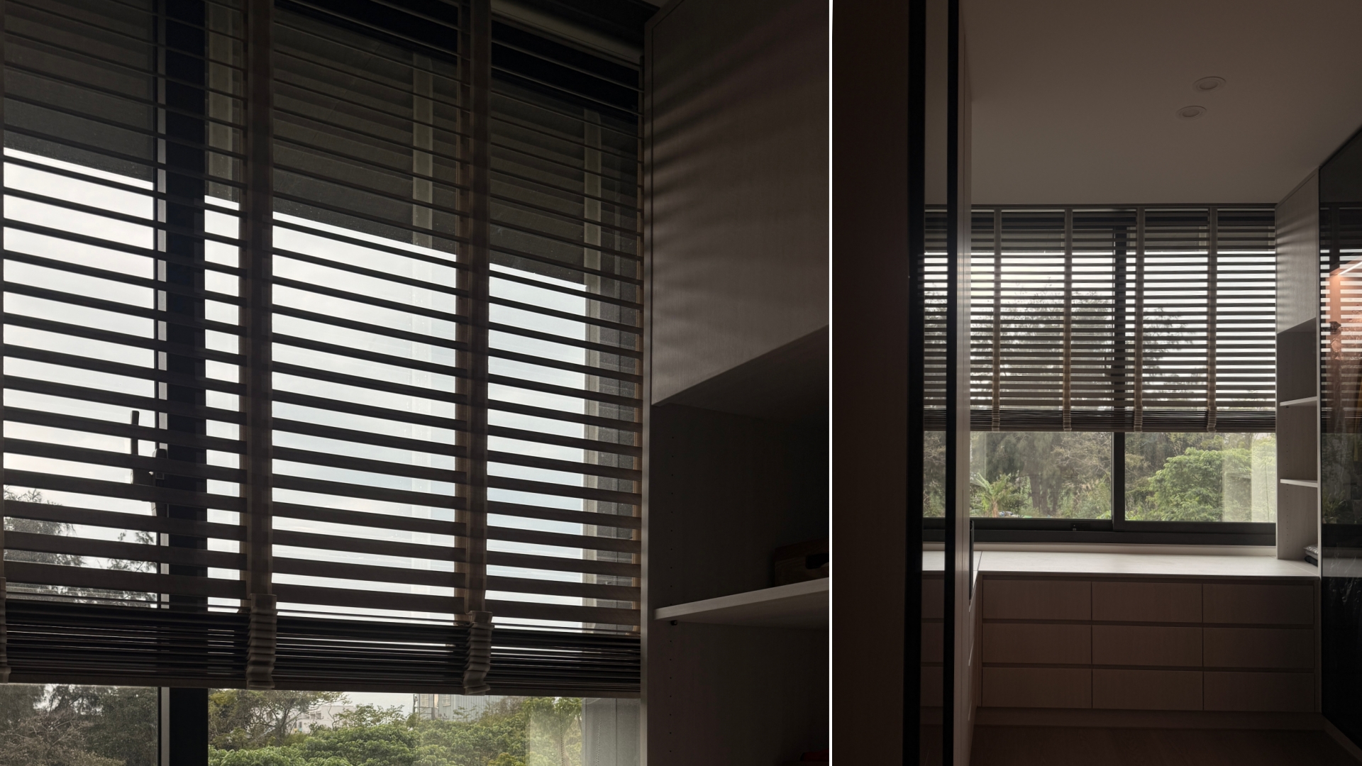 透過葉片角度調整,可靈活控制採光與視線,同時保有俐落、整潔的空間表情,讓實用機能與視覺質感並存。